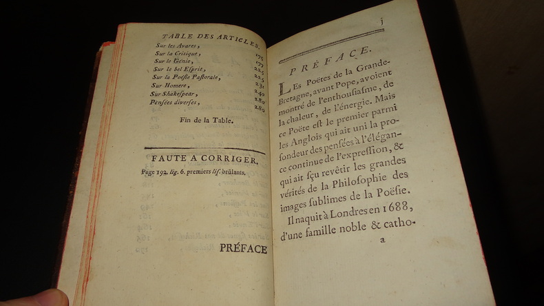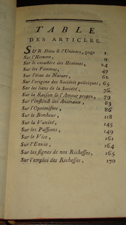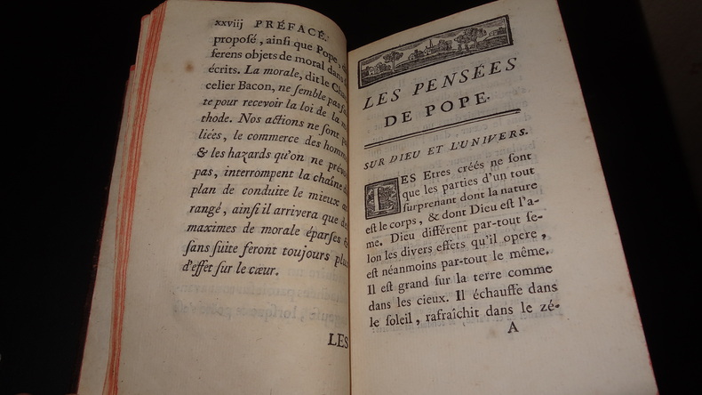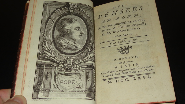 À Genève et se trouve À Paris, Chez Grangé, M. DCC. LXVI., 1 volume de format 17 x 10,5 cm, reliure plein veau d'époque, dos orné, tranches rouges, 1 portrait en frontispice, XXVIII + 312 pages, 1 angle abîmé et recollé (voir photo 3), bon état. Frais de port en supplément.