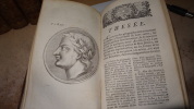 NOUVELLE ÉDITION de la traduction du grec par Jacques AMYOT (1513-1593) donnée par Cussac en 1783-87 (25 volumes), revue, corrigée et augmentée des notes d'E. Clavier, d’une table et de 131 MÉDAILLONS gravés sur bois. Les 12 premiers tomes sont constitués par le texte des "Vies des Hommes illustres", les tomes 13 à 17 par les "Oeuvres Morales", les tomes 18 à 24 par les "Oeuvres mêlées", le tome 25 et dernier constituant le volume de table des matières de ces deux dernières séries. Elle est ILLUSTRÉE de 21/22 PLANCHES hors-texte (la planche 18 MANQUE) de jolies figures par Borel, de Fraine, Moreau le jeune, Monnet, Marchand, Le Barbier, Myris, Marillier, gravées sur acier par Baquoy, Chateau, Halbou, Levillain, de Longueil, Née, Patas et Ponce. (Cohen, 810 pour la première édition de 1783-1805 - Brunet, IV, 739). BEL EXEMPLAIRE en basane glacée de l'époque, au dos décoratif. NICE COPY. PICTURES AND MORE DETAILS ON REQUEST.