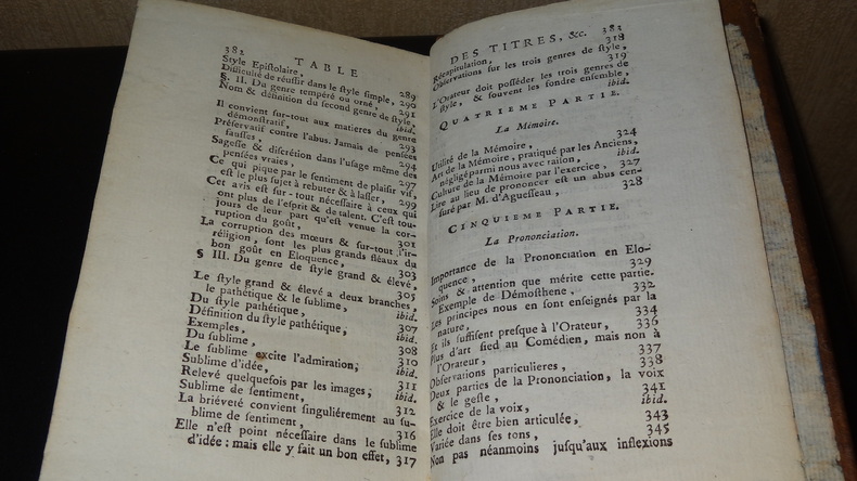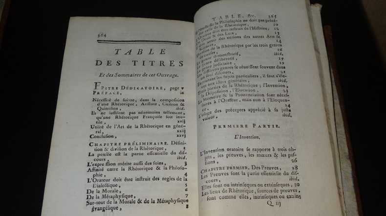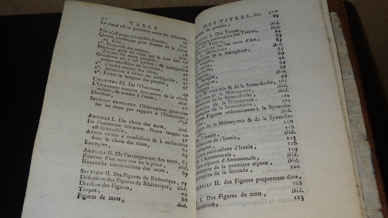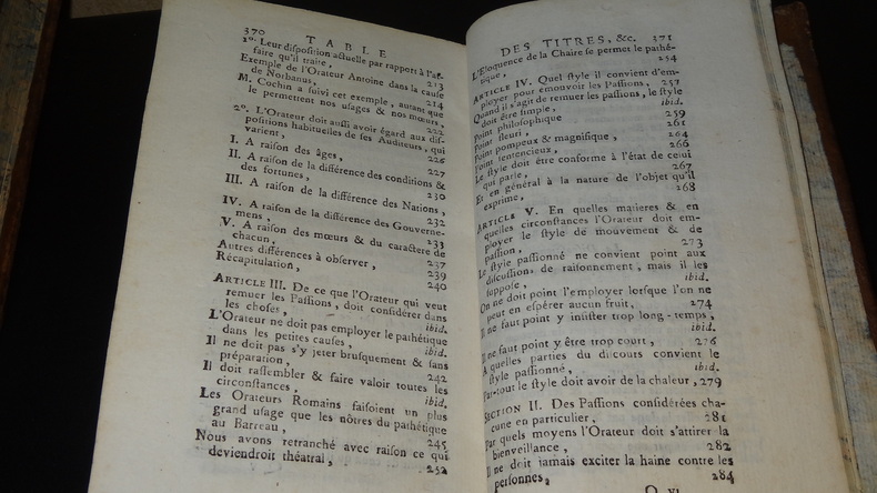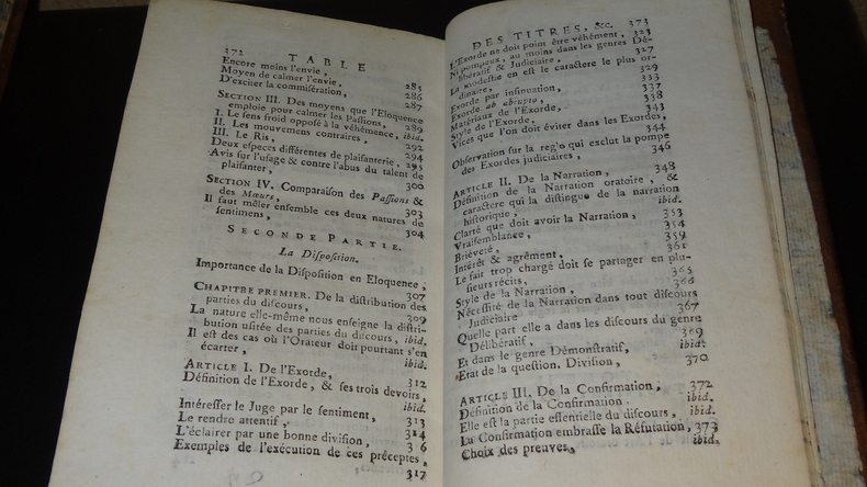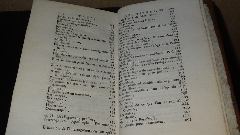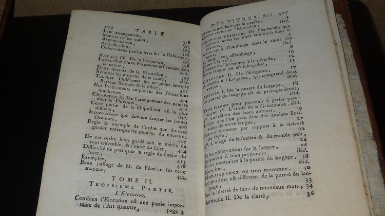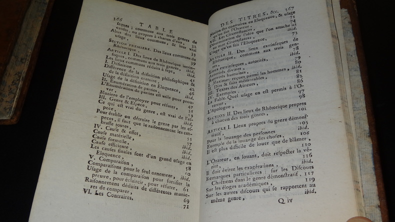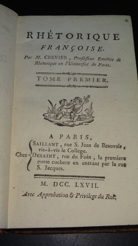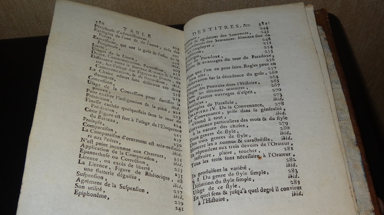 In 16. Dim. 17x10,5 cm. Pp. XI+411+(1). Bella edizione del 1770 di questa opera di retorica francese ad uso delle giovani donne.<BR><BR> <BR><BR>All'interno: Definizione di retorica, Disposizione, narrazione, Parti del discorso, figure, comunicazione, descrizione, dimostrazione, figure delle parole, Metafore, Allegorie, Ripetizioni ecc....<BR><BR> <BR><BR>Collazionato e completo.<BR><BR>Bella legatura in piena pelle coeva con titolo e decorazioni in oro al dorso. <BR><BR> <BR><BR>Copertina in piena pelle con titolo e decorazioni in oro al dorso in buone condizioni generali con usure e mancanze ai margini e dorso (vedere foto). Legatura in buone condizioni. All'interno le pagine si presentano in buone condizioni con fioriture e bruniture.