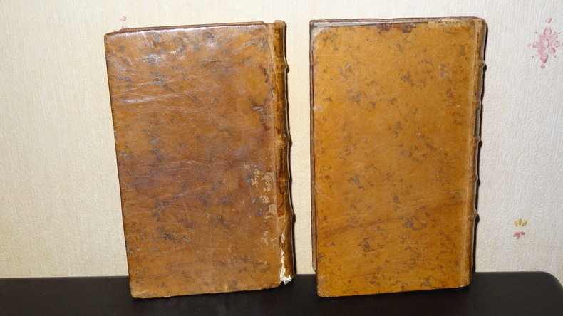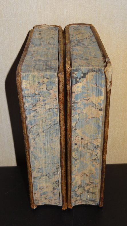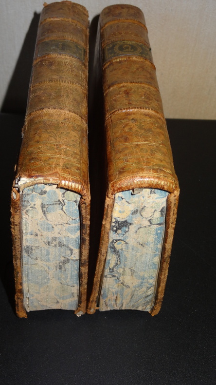 Bon état intérieur mais marques d'usure aux reliures. Etiquette de titre quasi manquante sur le tome 2, étiquettes de tomaison manquante sur les deux volumes. Annotations à la plume sur la dernière page de garde du tome 1 et du tome 2, coins légèrement écrasés