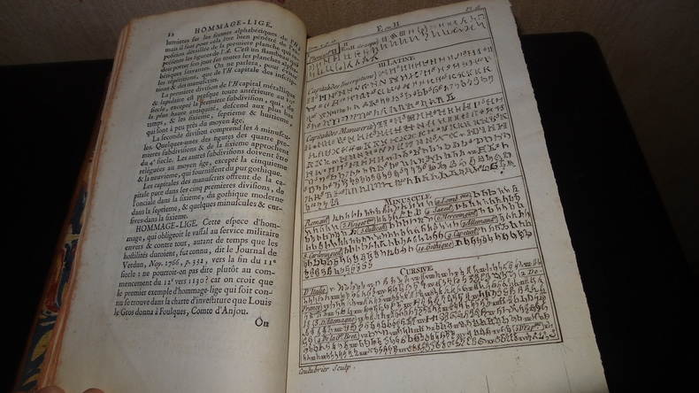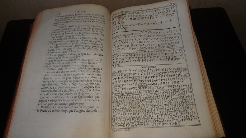 Bel exemplaire. L'ouvrage contient de précieuses planches pour « aider à connaître les caractères et écritures des différents âges et de différentes nations ». 51 planches hors texte. Trace de mouillure angulaire à la fin du tome I. Ex-libris de Claude Jean Baptiste Huet de Froberville (1752-1838), scientifique, député du Loiret sous la Révolution (1791-1792).