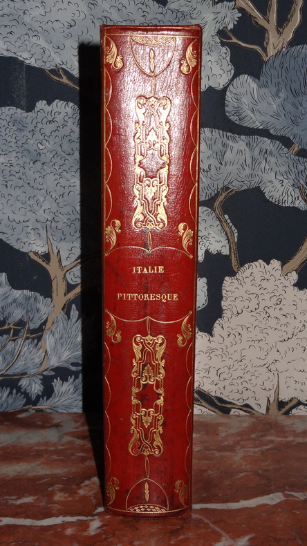 Première partie: Introduction, le Simplon, Savoie-Piemont, Mont Saint-Bernard, Ivrée, Verceil, Alexandrie, Marengo, Nice, Monaco, Gènes, Piombino. Lombard. Venise, Vérone, Vigence, Padoue, Mantoue, Parme, Plaisance, Modène, Massa, Lucques. Musées d'Italie. Toscane, Florence, Volterra, Vallombreuse, Fiesole, Pise, Livourne, Pistoia, Sienne, Arezzo, Cortone. Voyage musical, par Hector Berlioz. Deuxième partie: Etat Romain, Sabine, Ombrie, Territoires de Perugia et d'Orvieto, Ferrare, Bologne, le Rubicon, Rimini, San-Marino, Marche d'Ancone, Rome. Campagne de Rome. Naples. Calabre, Basilicata, Terre d'Otrante, Pouilles, les Abruzzes. La Corse, l'Ile d'Elbe, la Sardaigne, la Sicile, Malte.,environ 134 planches ht.- titre général, (2)-VIII-56, 16, 48, 28, 48, 24, 128, 8, 80, 64 et 64 pages, texte sur 2 colonnes, orné de planches gravées,dessinées par Mme Haudebourt-Lescot, MM. Le Comte de Forbin, Granet, Deveria, Storelli, Coignet, Girard et Labrouste, 2 cartes dépliantes gravées, quelques rousseurs et mouillures en coin,dans l'etat. Remise de 20% pour toutes commandes supérieures à 200 €