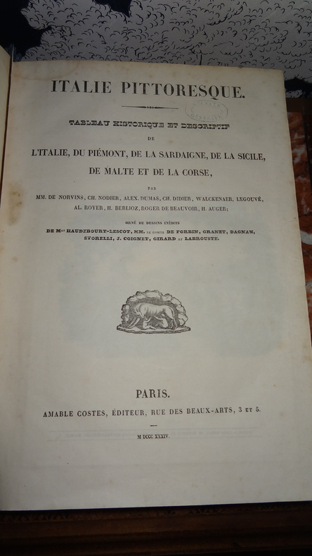 Par MM.De Norvins, Ch.Nodier, Alex.Dumas, Ch.Didier, Walcknaer, Legouvé, Al.Royer, H.Berlioz, Roger de Beauvoir, H.Auger, Lemonnier - dessins inédits de Haudebourt-Lescot, Le Comte de Forbin, Granet, Deveria, Storelli, Coignet, Girard et Labrouste. Classification Dewey : 945-Italie