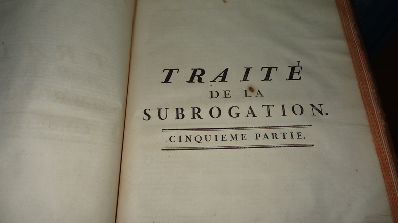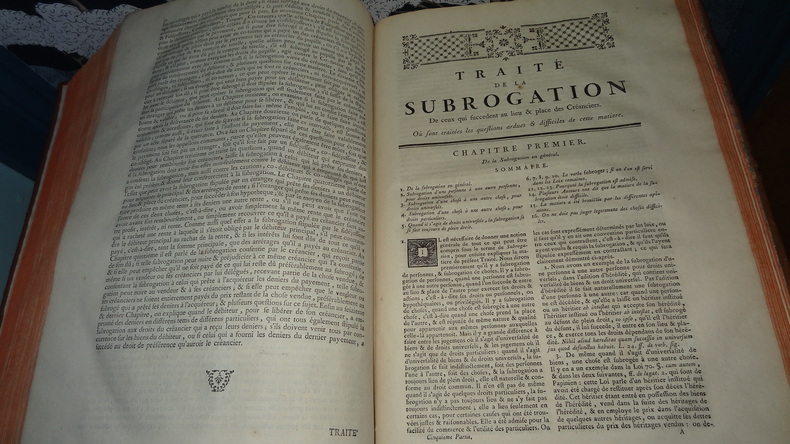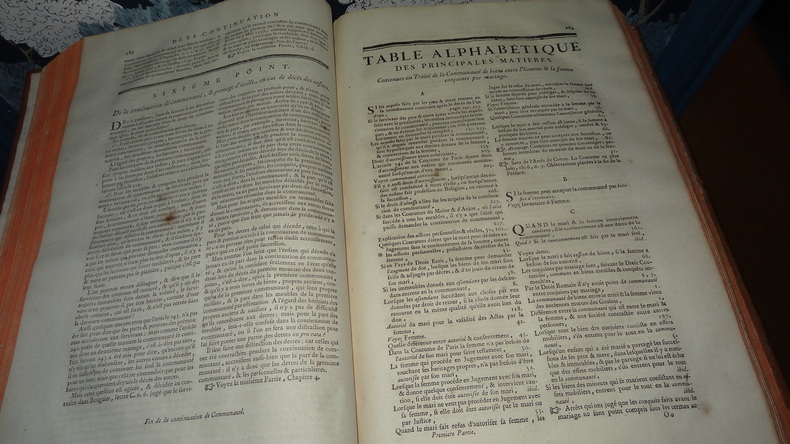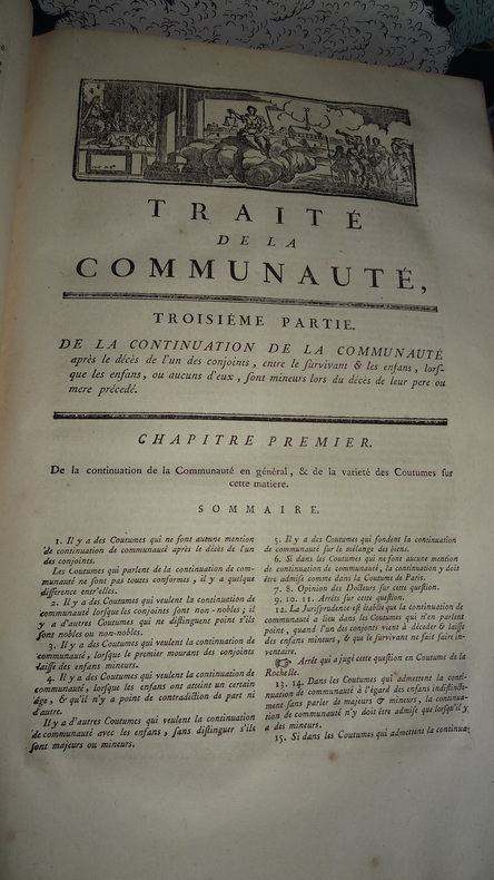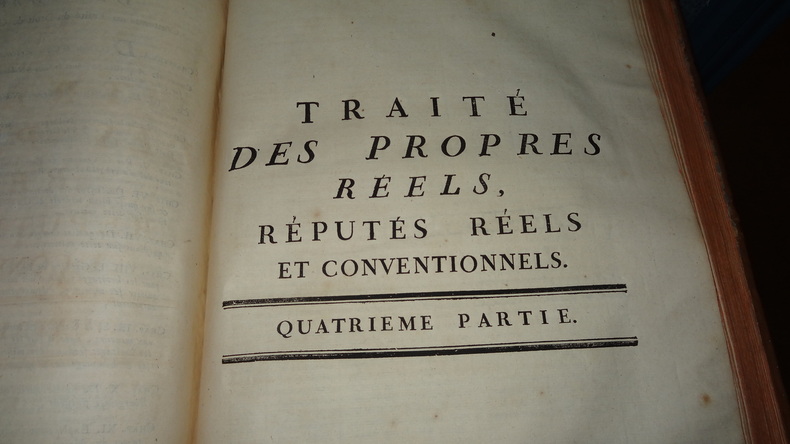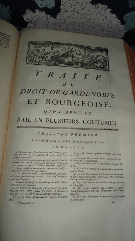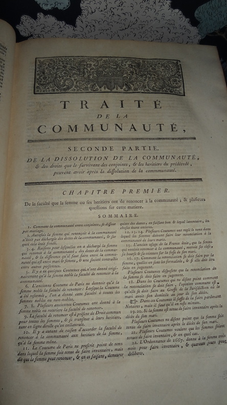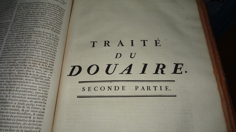 À Sçavoir, I° Traité de la Communauté de biens entre l'homme & la femme conjoints par mariage; II° Traité du Douaire; III° Traité de la Garde Noble & Bourgeoise; IV° Traité des Propres réels, réputés réels & conventionnels; V° Traité de la Subrogation. Nouvelle édition, revue, corrigée & augmentée par M.J.A. Serieux. À Paris, Chez Boudet, M. DCC. LX. 1 volume in folio de format 40,5 x 27 cm, reliure plein veau d'époque, dos orné, tranches rouges, coiffes abîmées, épidermures et travaux de vers à la reliure, intérieur en bon état. Frais de port en supplément.