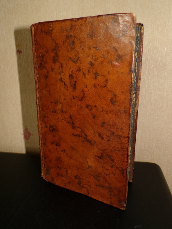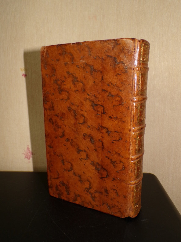A Genève et se trouve à Lyon, chez les Frères Périsse, 1767. Un vol. au format in-12 (172 x 103 mm) de 1 f. bl. xxxii - 400 pp. et 1 f. bl. Reliure de l'époque de pleine basane marbrée havane, plats jansénistes, dos à nerfs orné de filets gras à froid, jeu de petits filets obliques dorés sur les nerfs, doubles caissons d'encadrement dorés, larges fleurons dorés, semis de cercles et de pointillés dorés, pièce de titre de maroquin brun, titre doré, palette dorée en tête et queue, filet doré sur les coupes, toutes tranches rouges.