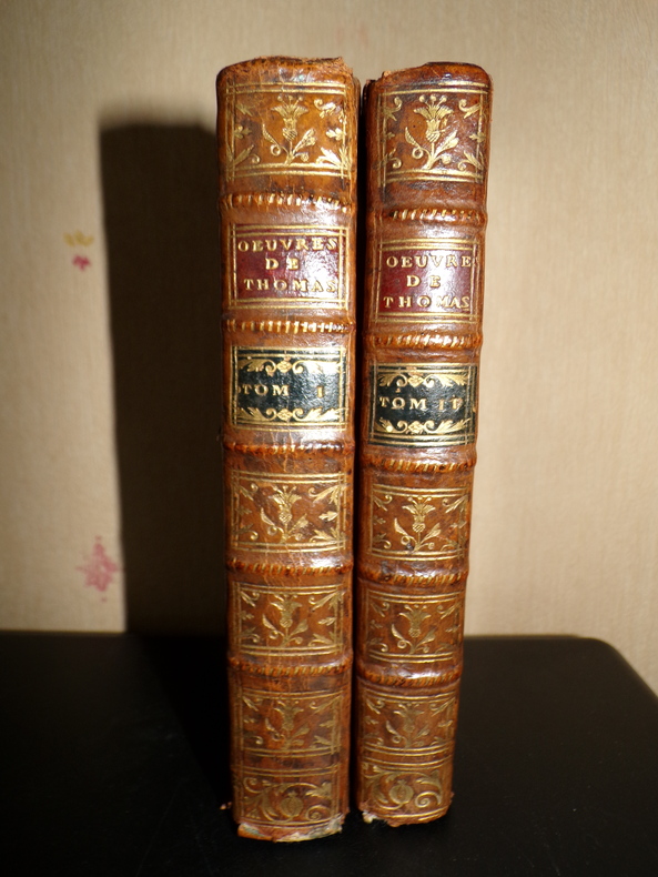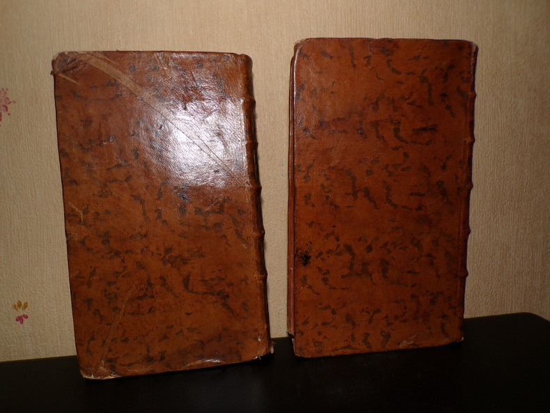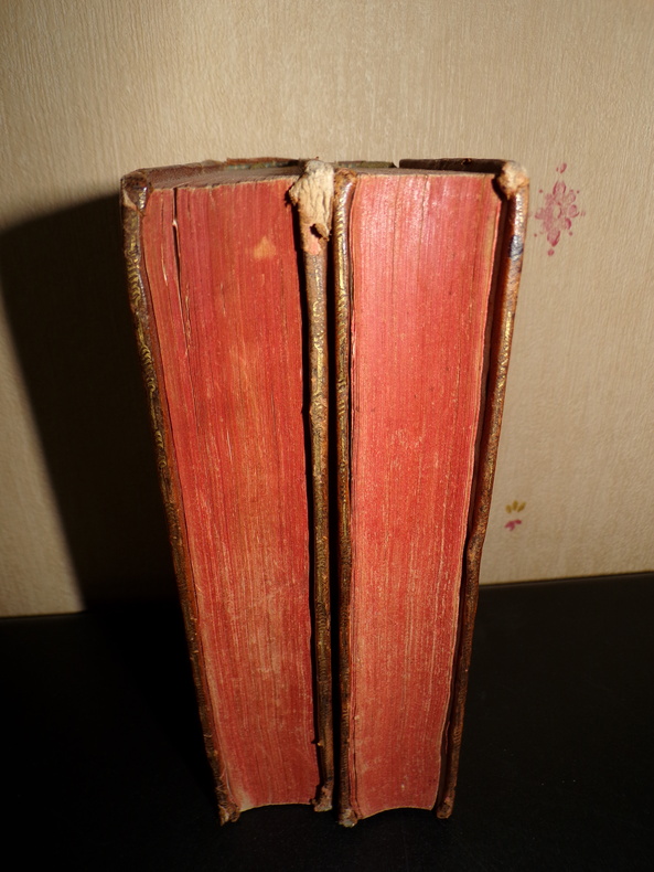 À Lyon, Chez les Frères Perisse, 2 volumes de format 17 x 10 cm, reliures plein veau d'époque, dos ornés, tranches rouges, IV, 251, 160 + 224, 147 pages, coiffes basses abîmées, épidermures au tome 2, intérieurs en bon état. Frais de port en supplément.