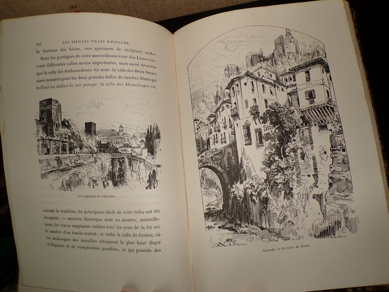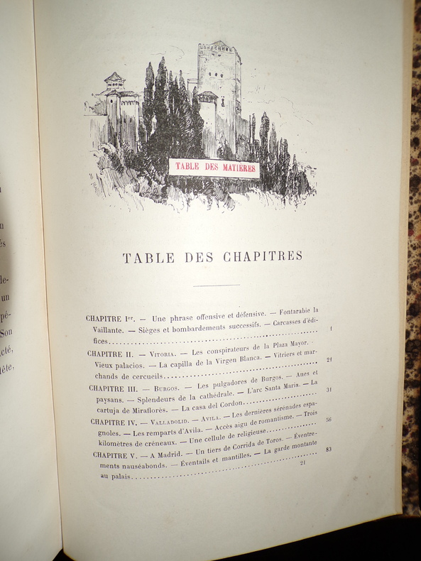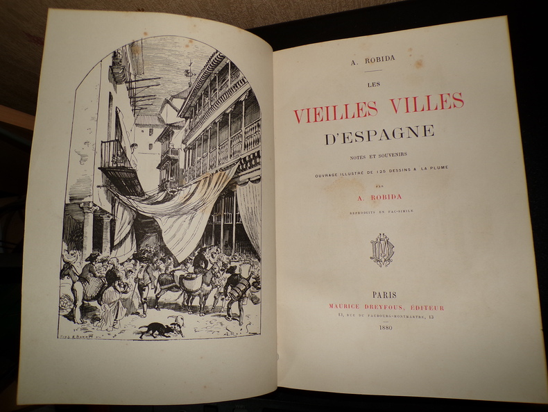 P., Maurice Dreyfous, 1880. In-8 rel. pleine percaline rouge éditeur, titre doré au dos et plat sup., décor noir, or et vert en encadrement aux plats, tranches dorés, 324 pp., frontispice, 125 reprod. de dessins à la plume par Robida, dont 28 à pleine page.
