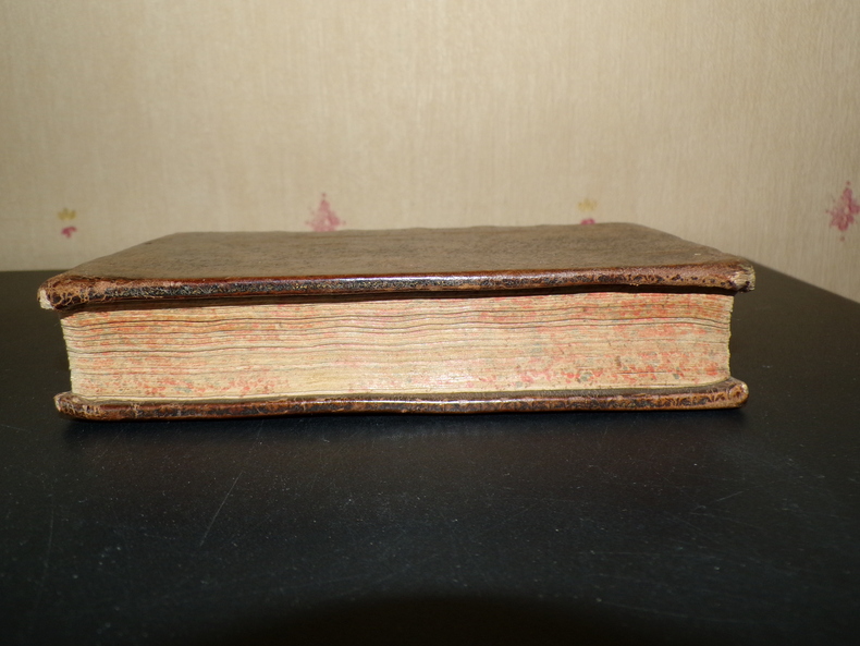 A Cologne, chez Pierre Marteau, 1686. Un vol. au format in-12 (163 x 103 mm) de 8 ff. n.fol., 402 pp. et 1 f. bl. Reliure de l'époque de pleine basane marbrée havane, armes dorées surmontées d'une couronne de marquis au centre de chacun des plats, dos à nerfs orné de filets gras à froid, doubles caissons d'encadrement dorés, larges fleurons dorés, titre doré, roulette sur les coupes, tranches mouchetées.