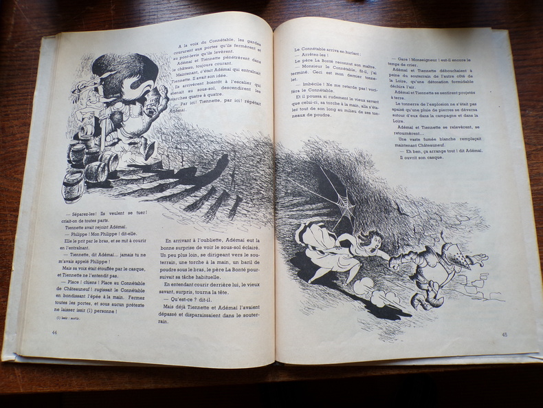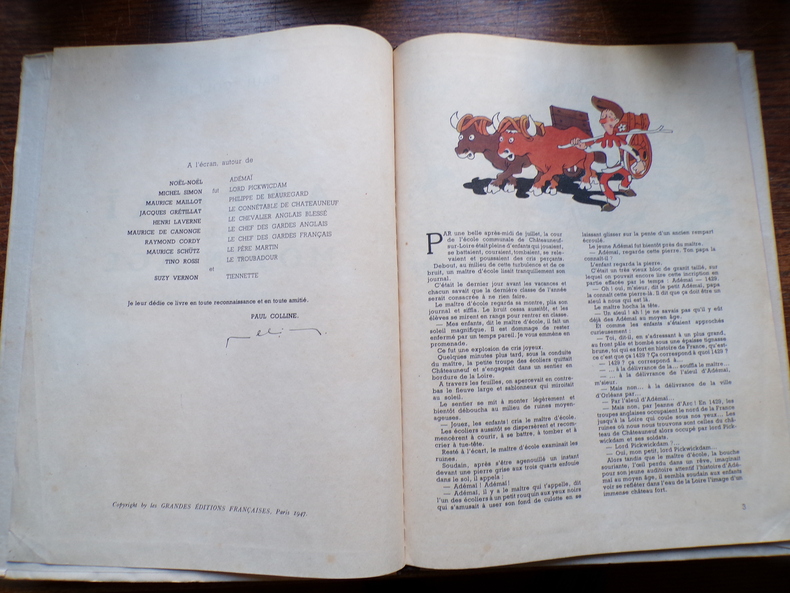 1947 album (hard-back editor) in-quarto, dos muet toile grise (grey percale on the spine without text), illustration du premier plat et illustrations intérieures en couleurs et en noir de Moallic (illustration of the front cover and interior illustrations colors and in black of Moallic), 48 pages, 1947 à Paris les Grandes Editions Françaises,