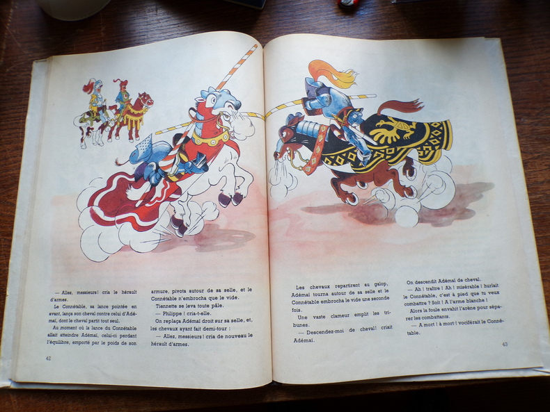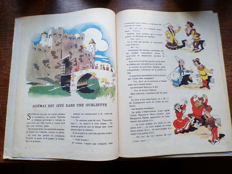 Paris Les Grandes Editions 1947 In-4, demi-percaline grise, composition en couleurs sur le premier plat (cartonnage de léditeur). Nouvelle édition de cet ouvrage illustré par Marc Moallic de dessins in texte et à pleine page, en couleurs et en noir et blanc. L'histoire a été adaptée au cinéma par Jean de Marguenat, avec Noël-Noël (Adémaï), Michel Simon (Lord Pickwickdam), Jacques Grétillat (le connétable de Châteauneuf), Maurice Maillot (Philippe de Beauregard), Tino Rossi (le troubadour), etc. Cartonnage abîmé.