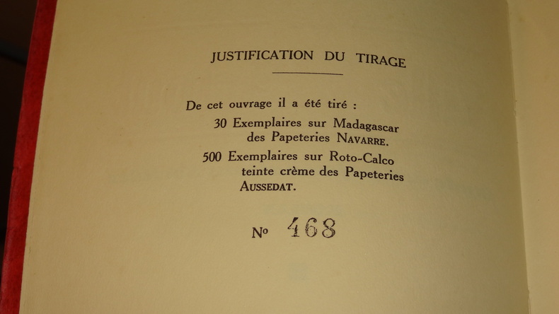 Paris; Les Éditions du Cygne, tirage à 530 exemplaires numérotés, ici l'un des 500 sur Roto-Calco teinte crème des Papeteries Aussedat (n°468), 1 volume broché de format 19,5 x 14,5 cm, 185 pages, 1 nom à l'encre en couverture, bon état. Frais de port en supplément.