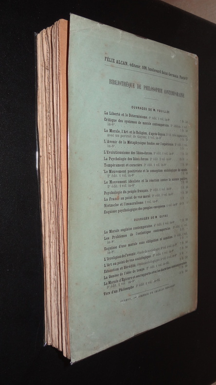 Paris; Félix Alcan, Éditeur, Bibliothèque de Philosophie Contemporaine, deuxième édition, 1 volume broché de format 22,5 x 14,5 cm, XIX + 550 pages, 1 pliure peu marquée en couverture, bon état. Frais de port en supplément.