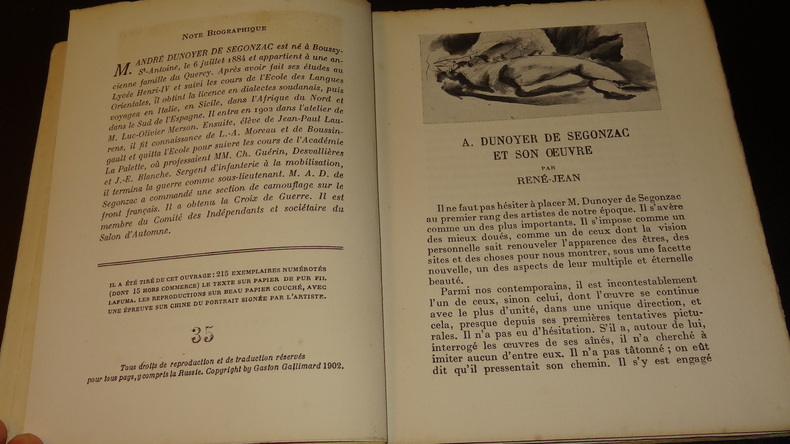 Éditions de la Nouvelle Revue Française, exemplaire de tête tiré à 215 exemplaires numérotés sur papier pur fil pour le texte, et sur beau papier couché pour les reproductions (n°35), avec une épreuve sur chine du portrait signée par l'Artiste, ici Georges Aubert, 1 volume broché de format 17 x 13 cm, 63 pages, reproductions en noir et blanc, rousseurs en couverture, dos bruni, bon état. Frais de port offerts en lettre suivie pour la France.