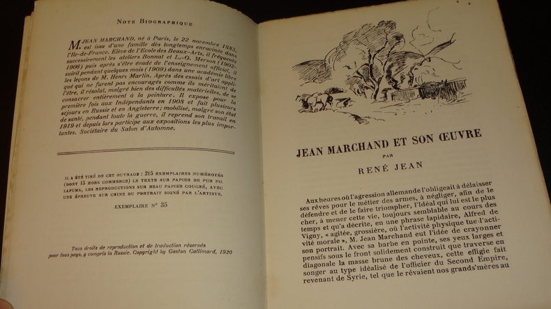 Éditions de la Nouvelle Revue Française, exemplaire de tête tiré à 215 exemplaires numérotés sur papier pur fil pour le texte, et sur beau papier couché pour les reproductions (n°35), avec une épreuve sur chine du portrait signée par l'Artiste, ici Jules Germain, 1 volume broché de format 17 x 13 cm, 63 pages, reproductions en noir et blanc, rousseurs en couverture, bon état. Frais de port offerts en lettre suivie pour la France.