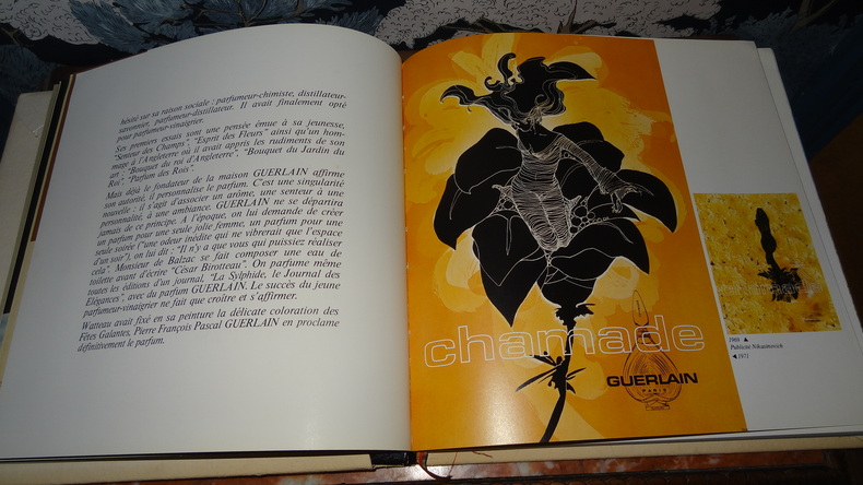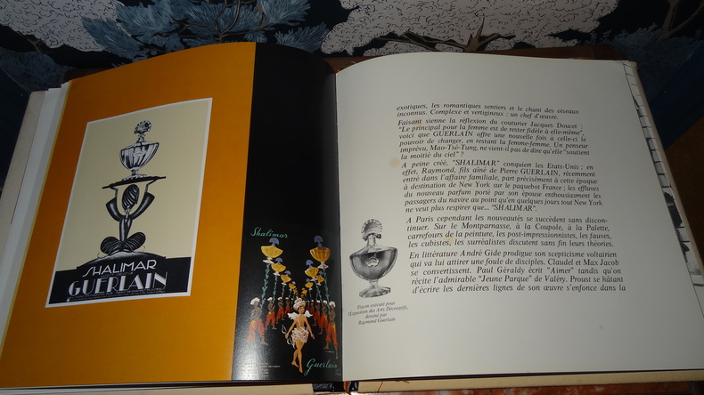 1 album cartonné de format 26,5 x 26 cm, jaquette en papier pur chiffon, orné en couverture d'une fresque gaufrée d'après le fronton sculpté sur l'immeuble Guerlain à Paris, intérieur non paginé avec nombreuses reproductions d'affiches, de publicités ainsi que des photographies, coiffe supérieure légèrement enfoncée et quelques salissures sur le plat arrière, intérieur en très bon état. Frais de port en supplément.