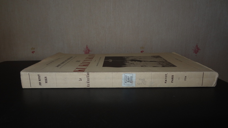 1ere édition française, 1934 Contents, Chapitres : Croissance de l'invisible empire - L'ombre du passé - Psychologie du Klan - Klan et nativisme - Klan et anticatholicisme - Secret et civisme - Déclin du Ku Klux Klan couverture en bon état, avec une légère pliure sur la droite du plat supérieur, une infime déchirure sur le bord gauche du plat inférieur, sans manques (1 mm), la couverture est sinon en très bon état, intérieur frais et propre, exemplaire non coupé, coin inférieur des pages à peine corné sans gravité, cela reste un bel exemplaire