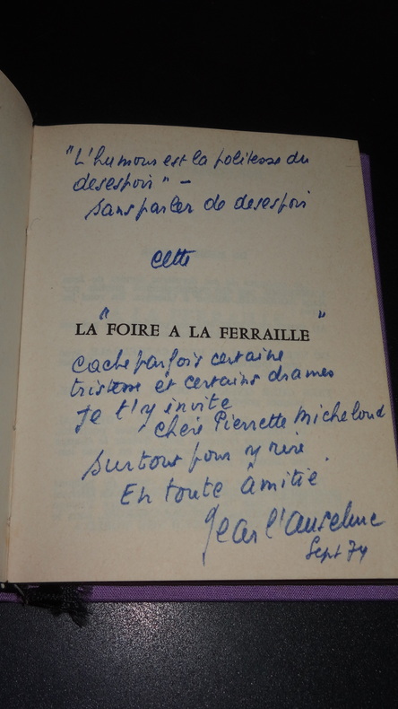Les Éditeurs Français Réunis, tirage à 2200 exemplaires numérotés (n°34), 1 volume cartonné toilé de format 14 x 10,5 cm, 95 pages, envoi manuscrit de l'Auteur à la poétesse Pierrette Micheloud, très bon état. Frais de port en supplément.