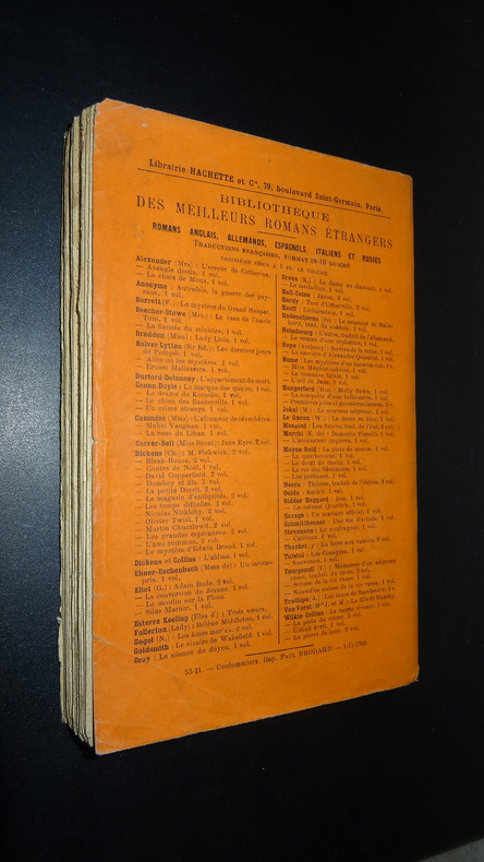 Paris; Librairie Hachette & Cie, Bibliothèque des Meilleurs Romans Étrangers, deuxième édition, 1 volume broché de format 19 x 12 cm, 300 pages, bon état. Frais de port en supplément.