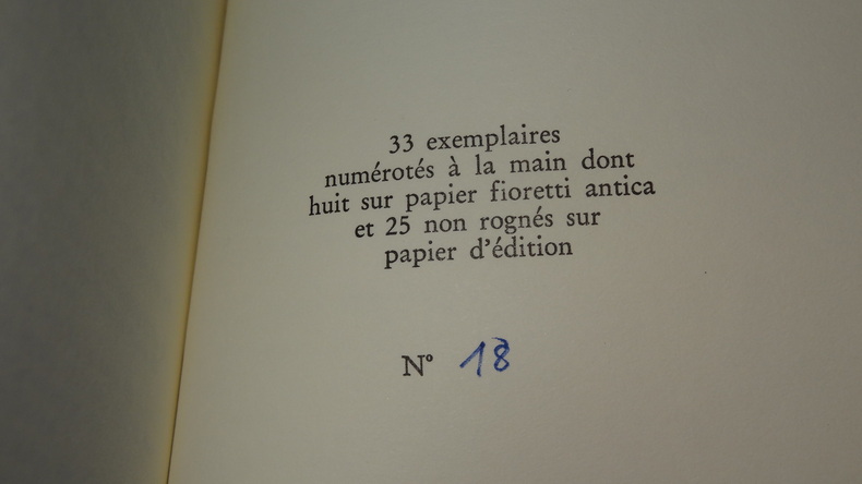 Éditions Phantomas, édition originale, tirage à 33 exemplaires numérotés, ici l'un des 25 non rognés sur papier d'édition, 1 volume broché de format 22 x 13 cm, 208 pages, très bon état, non coupé. Frais de port en supplément.