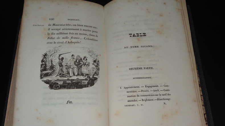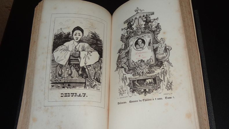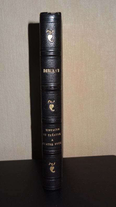 Debureau. Histoire du théâtre à quatre sous, pour faire suite à l'histoire du Théâtre-Français.Edité parGosselin, Paris, 1833, in 8°, reliure demi-cuir, manques en coiffes, au dos, coins frottés, 141 & 163 pp., rousseurs éparses, (couvertures conservées en partie)Bien rare
