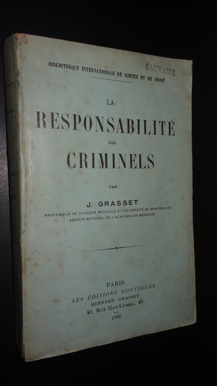 LES EDITIONS NOUVELLES BERNARD GRASSET. 1908. In-12. Broché. Etat passable, 2ème plat abîmé, Dos abîmé, Intérieur acceptable. 64 pages - incomplet - ouvrage s'arrêtant à la page 64 - 2ème plat manquant - dos manquant - petit manque sur le 1er plat.. . . . Classification Dewey : 364-Criminologie