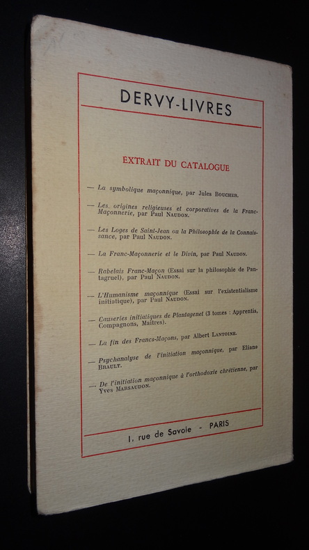 Paris Dervy-livres 1965 in-8 broché 1 volume, broché crème in-octavo Editeur (paperback in-octavo Editor) (22,6 x 14,5 cm), dos et couverture crème imprimés en noir et rouge (spine and cover printed in black and red), tranches non rognées (edges no smooth), sans illustrations, 245 pages, 1965 à Paris Dervy-livres Editeurs,
