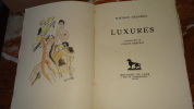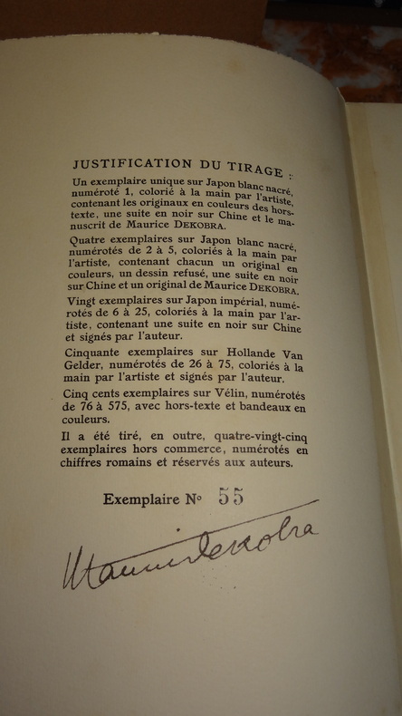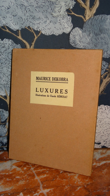 1924 Paris, Éditions d'art des tablettes, 1924. Broché: 23 x 29 cm, 121-[6] p. + 4 pl., non coupé. Édition originale. Ouvrage illustré de 15 gravures en noir à pleine page et truffé d'une suite (non annoncée) de 2 dessins originaux en couleurs, signés, et de 2 eaux-fortes, également signées. Tiré à 360 exemplaires, celui-ci l'un des 15 exemplaires sur Chine signé par les auteurs (no. 20).Très bel état pour ce rare ouvrage érotique.