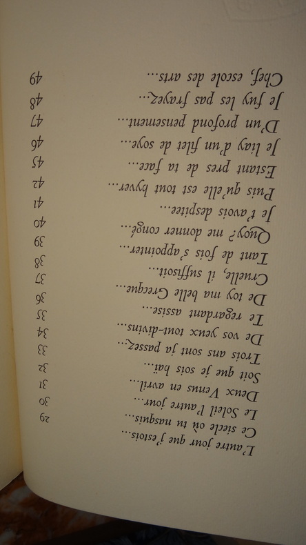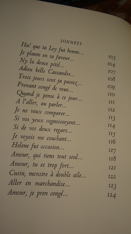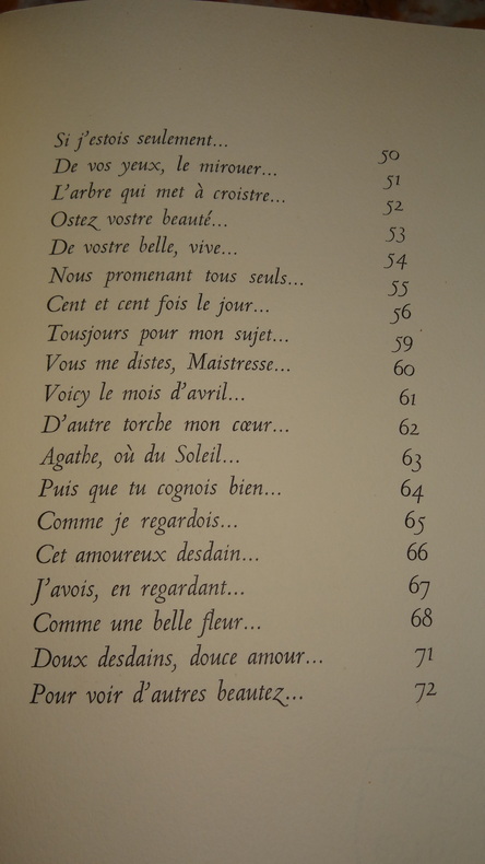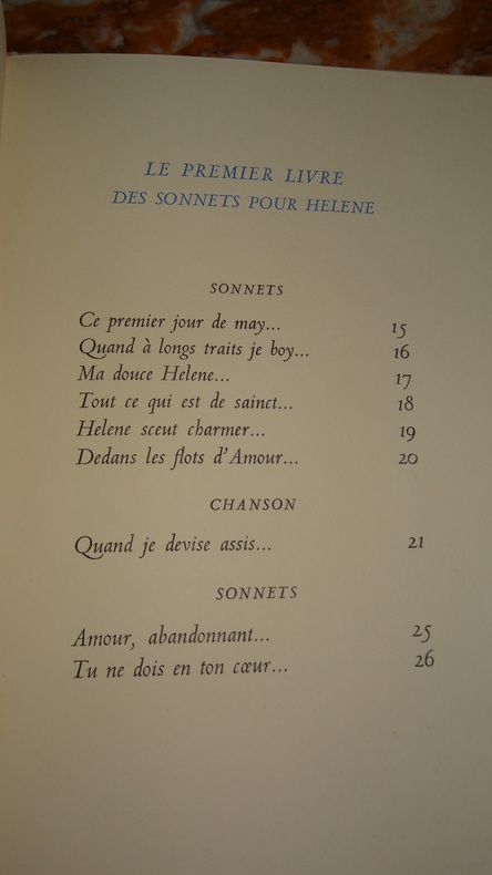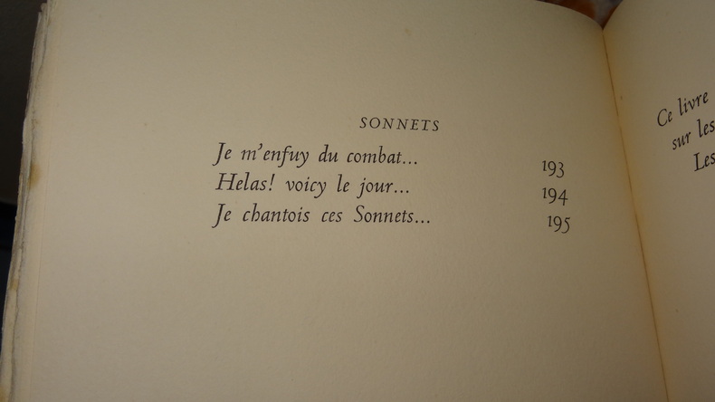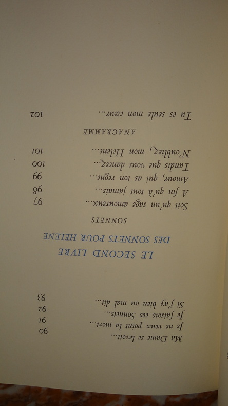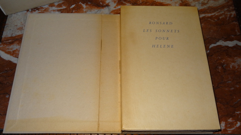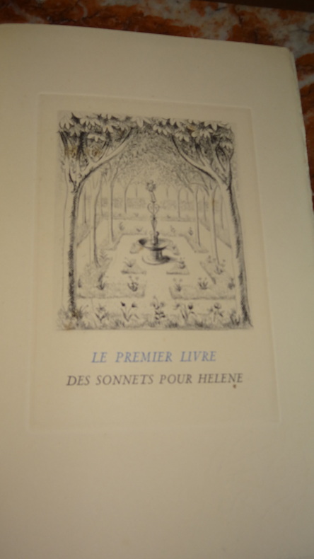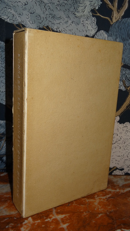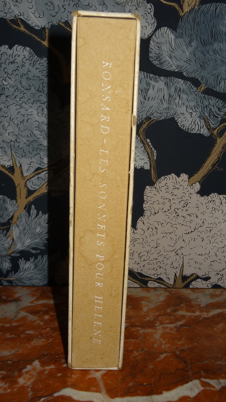 Tiré à 150 exemplaires numérotés, celui-ci 1 des 140 ( n°33) sur papier d' auvergne.Nous ne possédons que le Second livre ( sur 2) des Sonnets pour Hélène. (GrF)