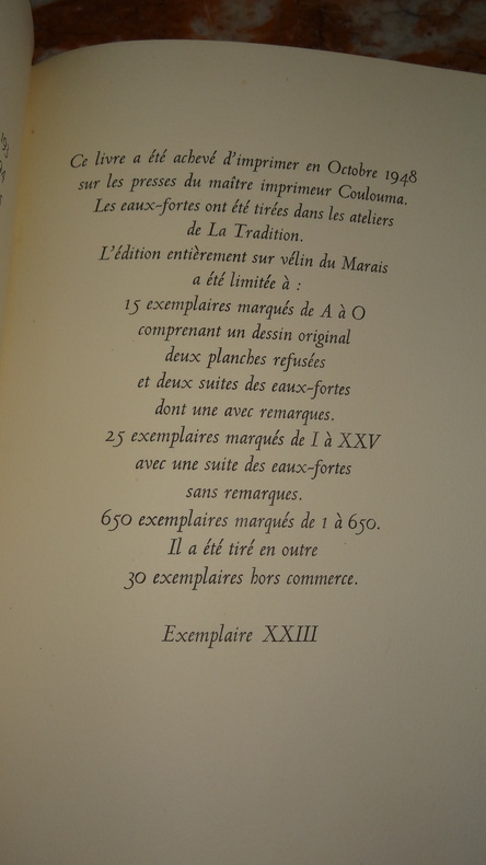 Éditions Fernand Hazan, tirage à 720 exemplaires numérotés sur vélin du Marais, ici l'un des 25 avec suite des eaux-fortes sans remarques (n°XXIII), 1 volume broché de format 23 x 14,5 cm, couverture rempliée, chemise et étui carton, 210 pages, 12 eaux-fortes + suite, décoloration de l'étui, livre en très bon état avec quelques rares et pâles rousseurs. Frais de port en supplément.