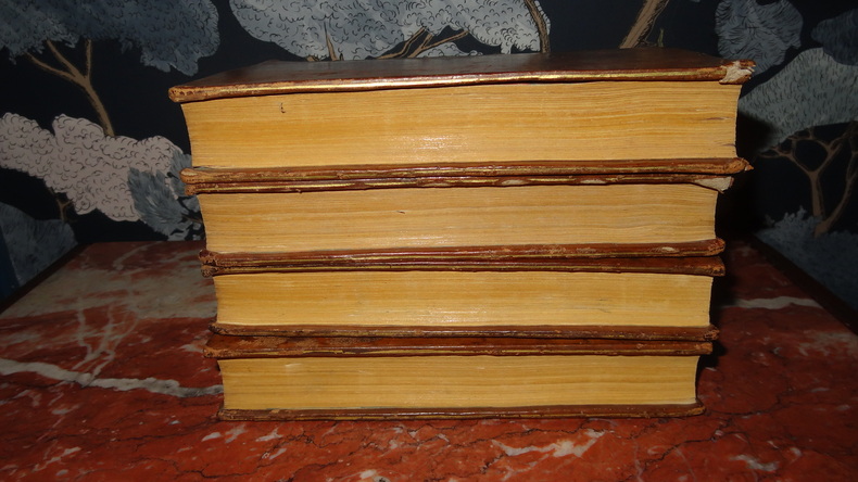 Anonyme (Anne d'Aubourg de la Bove Comtesse de Miremont), À Paris; De l'Imprimerie de Ph.-D. Pierres, 4 volumes de format 20 x 13 cm, reliures plein veau d'époque, XXXII, 370 + 510 + 508 (+ 1 tableau dépliant) + 484 pages, coiffe supérieure du tome 2 abîmée, quelques épidermures, intérieurs en bon état mais présence de pâles auréoles d'humidité sur quelques pages. Frais de port offerts en colissimo pour la France.