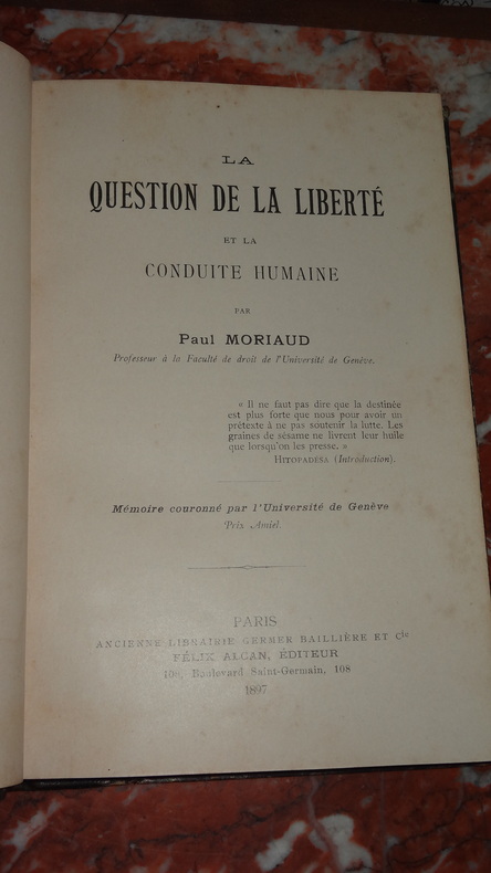 Éditions Félix Alcan, 1 volume de format 20,5 x 14 cm, reliure demi basane, couverture non conservée, 208 pages, dos insolé, usures aux angles, intérieur en bon état. Frais de port en supplément.