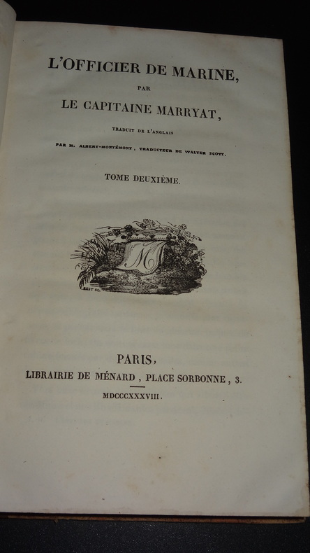 Paris; Librairie de Ménard, traduit de l'anglais par M. albert Montémont, 2 volumes de format 21,5 x 13,5 cm, reliure demi basane, dos orné, tranches marbrées, 364 + 380 pages, bon état. Frais de port en supplément.