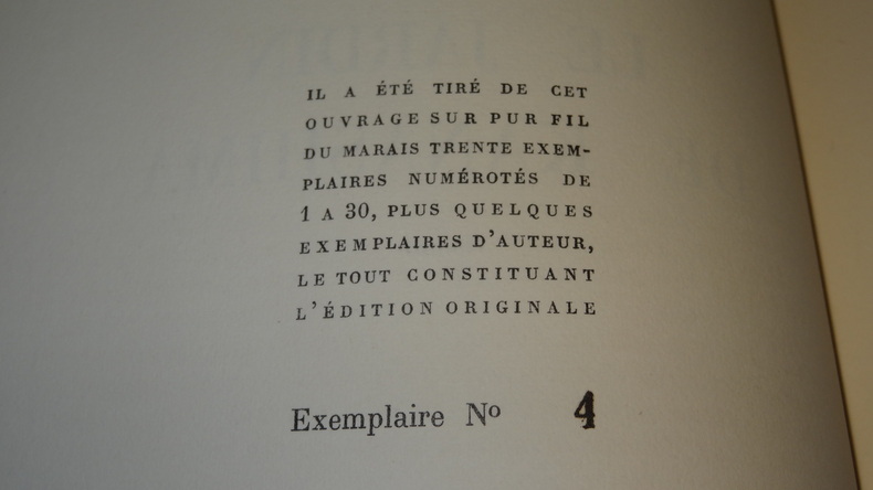 Edition originale tirée à 30 exemplaires numérotés sur pur fil. Celui-ci porte le numéro 21.