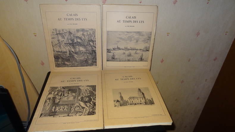 Les Cahiers du Vieux Calais, complet en 4 volumes brochés de format 27,5 x 21 cm, texte ronéotypé par l'Auteure, 224 pages (pagination continue), quelques hors-texte imprimés, bon état. Frais de port en supplément.