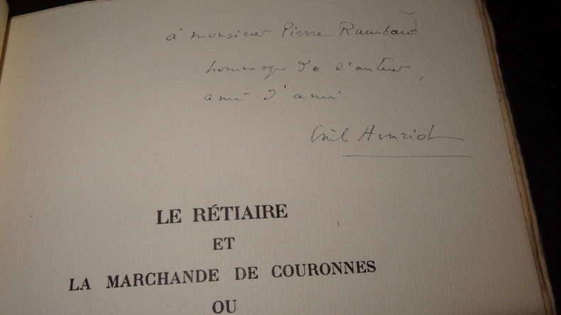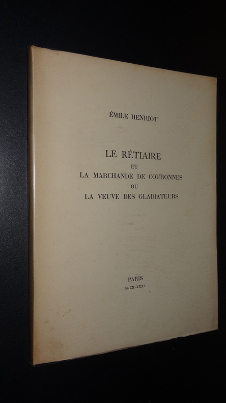"Ou la veuve des gladiateurs". Paris; Éditions Louis Enlart, tirage à 90 exemplaires numérotés, ici l'un des 80 sur vergé d'Arches (n°84), 1 volume broché de format 20 x 15 cm, 40 pages, envoi manuscrit de l'Auteur en page de faux-titre, bon état. Frais de port en supplément.