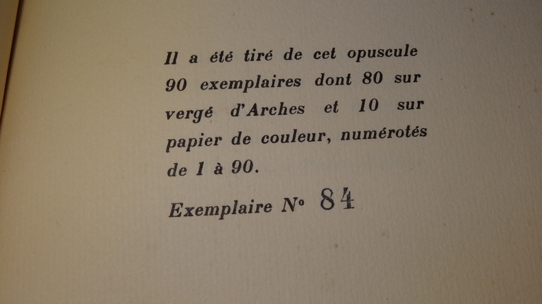 Edition originale. 1/80 ex.sur vergé d'Arches (tirage 90 expl.).