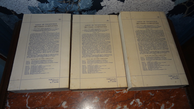 Éditions Gallimard, Œuvres Complètes Tome VIII, exemplaires du Service de Presse, texte établi, annoté et préfacé par André Jardin, complet en 3 volumes brochés de format 22,5 x 14 cm, couvertures rempliées, 624 + 472 + 660 pages, envoi manuscrit de André Jardin, tranches salies, intérieurs en bon état. Frais de port en supplément.