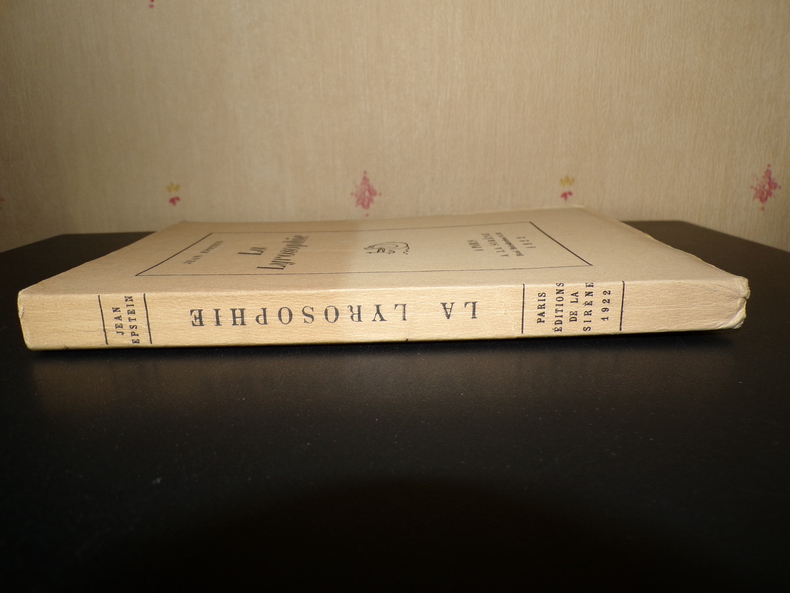 Paris: A la Sirène, 1922 in-12, 230 pages. Broché, couv. avec des rousseurs, autrement très bon état. Bien que la couverture porte la mention "Troisième édition", il s'agit du premier et seul tirage de cet ouvrage (achevé d'imprimé 24 mai 1922), après 25 exemplaire sur Hollande. Le cinéaste Jean Epstein propose dans cet essai le sentiment et la poésie comme système de compréhension de l'univers.