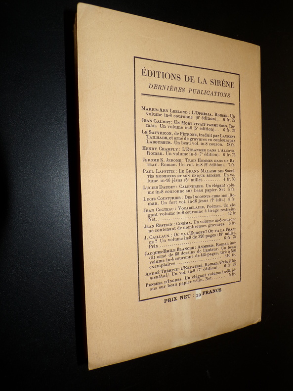 À Paris; À La Sirène, 1 volume broché de format 19 x 12 cm, 230 pages, décoloration en couverture, intérieur en très bon état, non coupé. Frais de port en supplément.