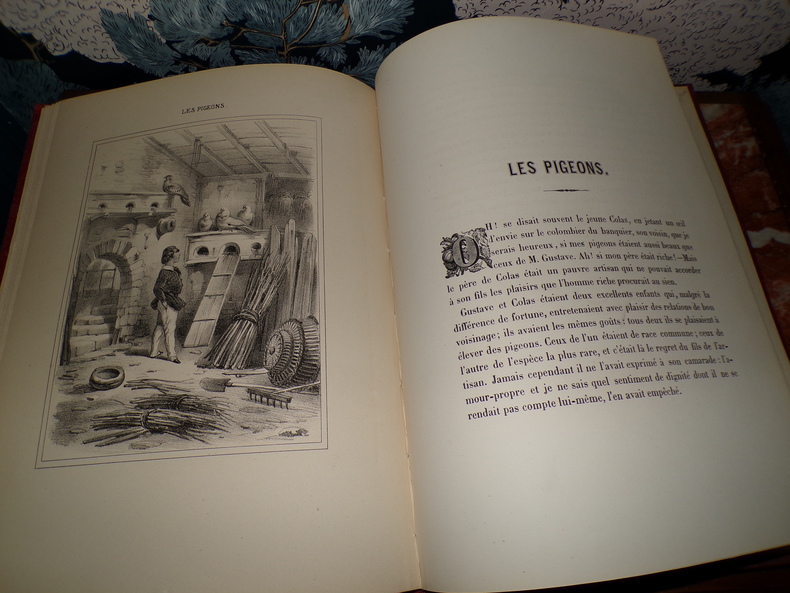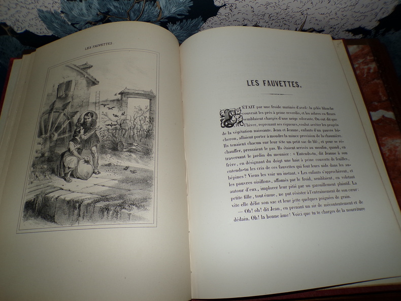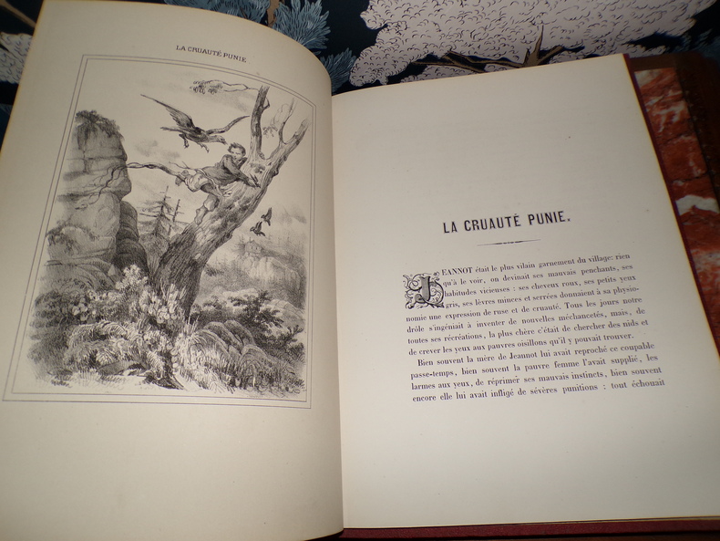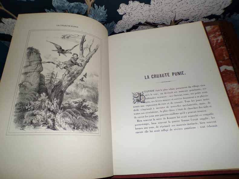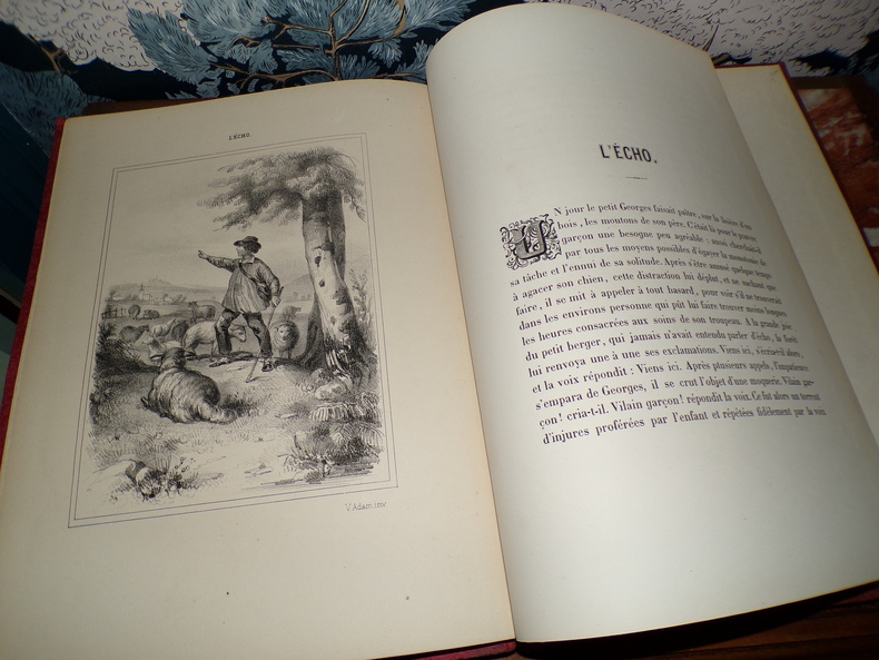 Choix de contes tirés des œuvres du Chanoine Schmith par M.G. Desvosges et illustrées de douze grandes lithographies dessinées par Victor Adam. Pont-à-Mousson (Meurthe); Publications Illustrées pour l'Enfance et la Jeunesse, Haguenthal, Imprimeur-Éditeur, sans date. 1 cartonnage percaline éditeur de format 31 x 23 cm, contient les contes: Le loup - La cruauté punie - La source - Le pain et l'eau - Le nid de perdrix - Les fauvettes - La montre - Les oiseaux - Les pigeons - L'ouragan - L'écho, 22 pages de textes, 12 gravures hors-texte. Cartonnage en bon état, intérieur en très bon état, sans rousseurs. Frais de port offerts en colissimo pour la France.