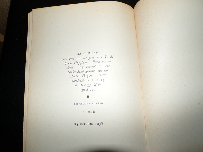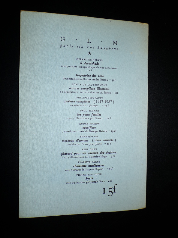 Éditions GLM, tirage à 535 exemplaires numérotés, ici l'un des 500 sur vélin (n°295), 1 volume broché de format 23,5 x 15,5 cm, non paginé (20 pages), bon état. Frais de port en supplément.