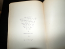 Titre : Les Chimères Auteur : Nerval Gérard de Illustrateur : Joffrin Gily Éditeur : L'Ancolie Lieu de publication : Paris Adresse de l'éditeur : 68, rue de J.-J. Rousseau Collection / Mention : Tel est mon bon plaisir - Deuxième volume de la suite Date de publication : non datée (vers milieu XXe siècle) Langue : Français Format : Broché (in-8) Description : Édition illustrée du recueil poétique Les Chimères de Gérard de Nerval, ornée de compositions originales en noir et blanc de Gily Joffrin. Publiée par L'Ancolie à Paris dans la série « Tel est mon bon plaisir ». Tirage limité à 2 085 exemplaires : 12 sur Auvergne, 145 sur pur fil Montgolfier, 428 sur vélin du Marais et 1 500 sur vergé d'Ingres, dont cet exemplaire porte le n° 1 715. Impression sur papier vergé d'Ingres de belle qualité. Ouvrage d'art recherché, célébrant l'un des sommets du romantisme français. État du livre : Bon état, intérieur frais et propre, couverture bien conservée avec infimes traces d'usage. Exemplaire numéro 1715