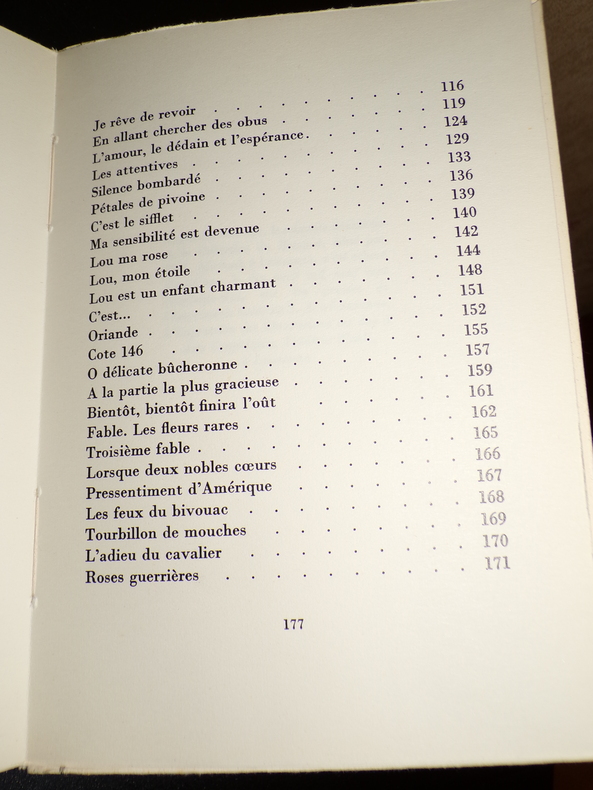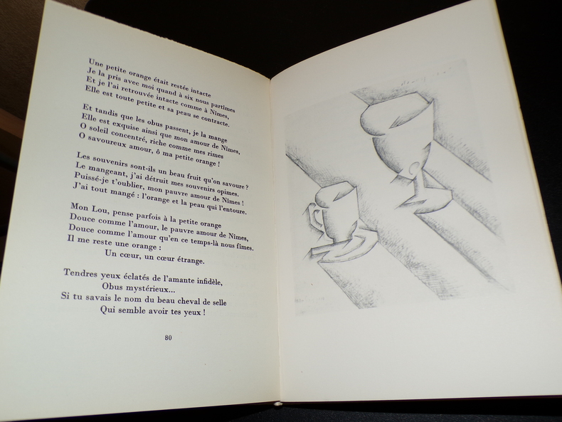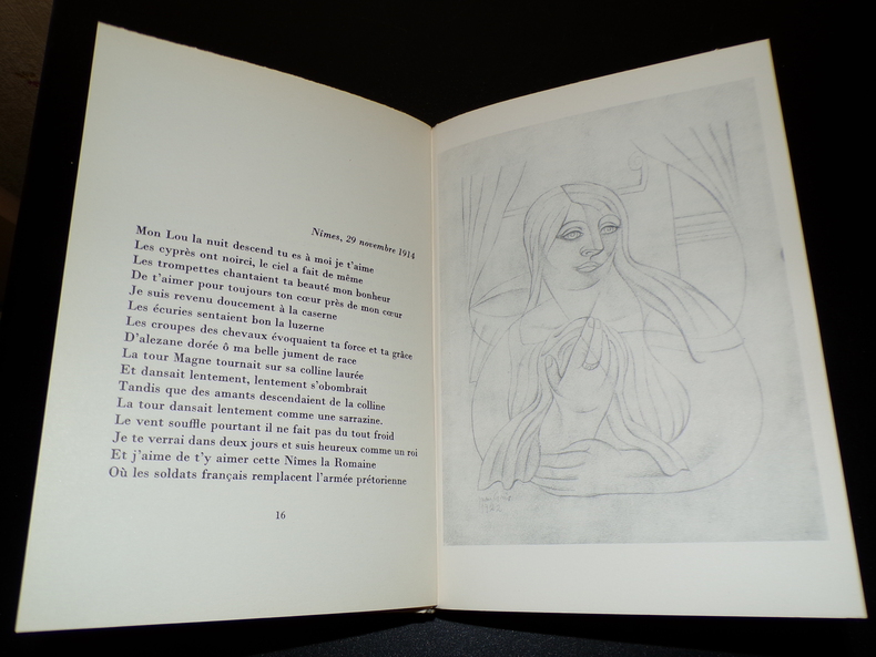 Livre Club du Libraire 1960, in-8 cartonnage toilé blanc illustré de l'éditeur, XVIII-149 p. (plats de couverture et dos légèrement défraîchis, sinon très bon état) Tirage limité à 3600 exemplaires (exemplaire non justifié), maquette de Claude Soalhat. Bonne édition club, enrichie d'une présentation de Marcel Adéma, de cet admirable recueil de poèmes adressés à Lou, publié pour la première fois trente ans après la mort d'Apollinaire.