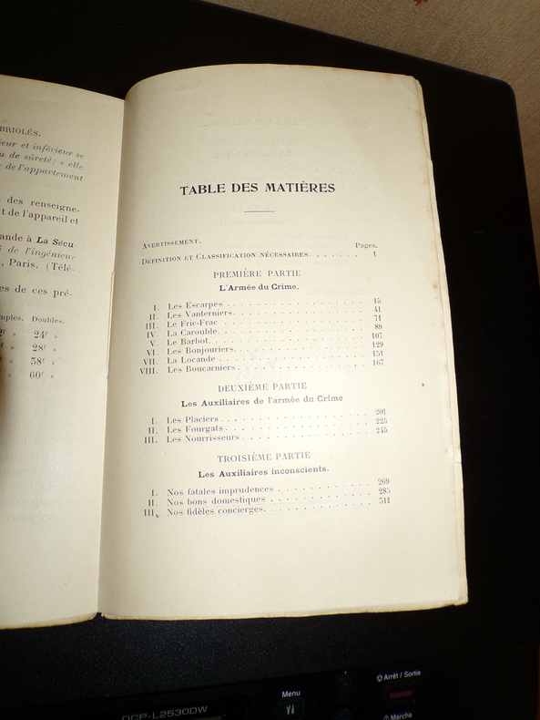 Paris A. Lahure, Imprimeur-Editeur 1905. In-12 broché de 516 pages au format 19 x 12 cm. Magnifique couverture illustrée, représentant le cambriolage David-Lévy à Marseille. photographique. Dos resté carré avec petites fentes. Plats et intérieur frais, malgré une petite coupure au bas de la couverture. Publicités pour les coffres-forts Fichet au verso de la couverture et en pages de garde ( reco-verso ) et Publicités pour les coffres-forts Gallet et Verstaen aux dernieres pages de garde ( reco-verso ), ainsi que pour les serrures Hercule au verso du 4ème plat. Préface de Henry Havard. Excellente étude criminelle avec de nombreuses illustrations et photographies, en noir, hors texte. Très bel état général. Rarissime édition originale surtout sous cette version avec couverture illustrée et publicités.