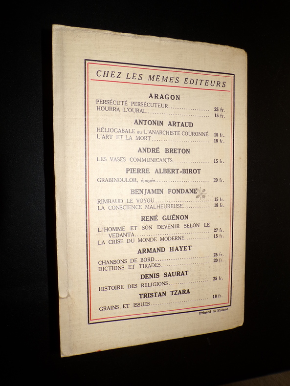 Éditions Denoël et Steele, 1 volume broché de format 19 x 12,5 cm, 255 pages, envoi manuscrit de l'Auteur en page de garde, petites pliures en couverture, intérieur en bon état. Frais de port en supplément.