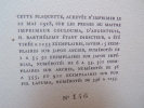Éditions Émile-Paul Frères, tirage à 1255 exemplaires, ici l'un des 300 sur Arches (n°146), 1 plaquette de format 20,5 x 15,5 cm, couverture rempliée, frontispice de Hermine David, 18 pages, bords de couverture légèrement décolorés, brunissement sur les pages de garde, bon état. Frais de port en supplément.