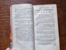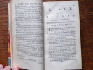 Exceptionnel exemplaire réglé entièrement non cartonné et donc de premier tirage (Ref. Le Petit, p. 384), conservé dans sa pure et belle reliure en maroquin janséniste de l’époque. A Paris, chez Denys Thierry, m.dc.xcvii (1697). Avec privilège du Roy. 2 tomes en 2 volumes in-12 de : I/ (6) ff. dont 1 frontispice, 468 pp., tache d’encre p. 11 ; II/ (6) ff. dont 1 frontispice, 516 pp. En tout 12 figures à pleine page comprises dans la pagination. Plein maroquin rouge janséniste, dos à nerfs, titre et tomaison frappés directement en lettres d’or sur les caissons du dos, coupes décorées, large et très belle roulette dorée intérieure, tranches dorées sur marbrures. Superbe reliure en maroquin janséniste de l’époque. 155 x 92 mm.