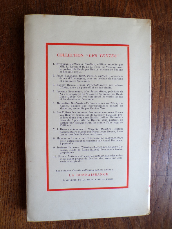 Éditions La Connaissance, collection "Les Textes" n°11, édition documentaire établie par Maurice Parturier, 1 volume broché de format 24 x 15 cm, couverture rempliée, double portrait gravé en frontispice dont un sur chine, 223 pages, impression sur papier vergé, bon état. Frais de port en supplément.