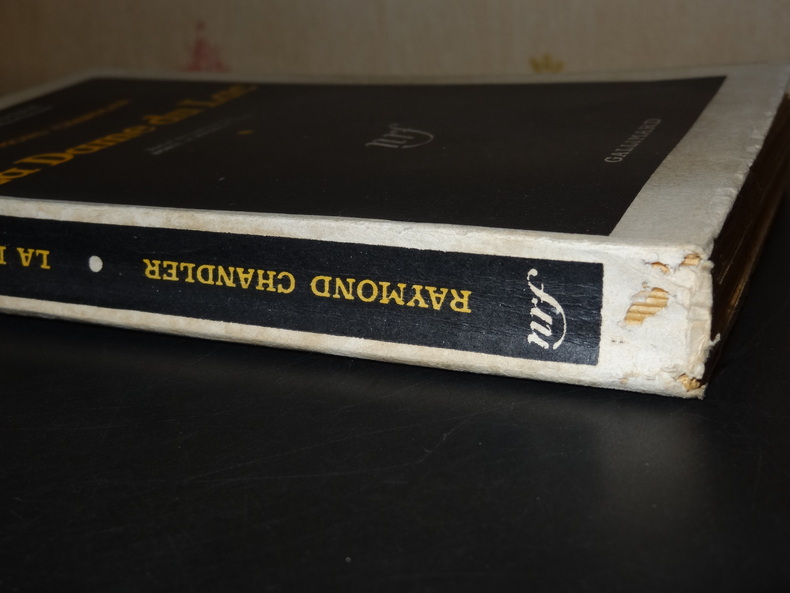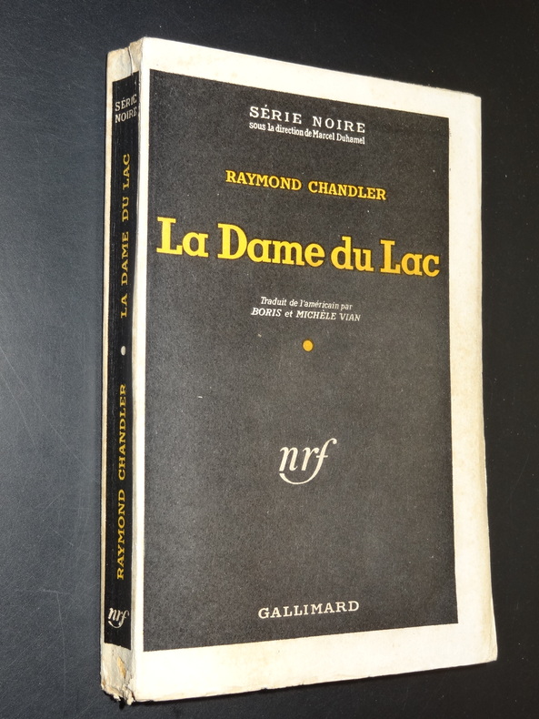 Editions Gallimard / Collection " Série Noire " n° 8 de 1948. In-12 broché de 278 pages au format 12 x 18,5 cm. Couverture noire, mate, avec titre imprimé en jaune. Dos carré, très légèrement insolé. Couverture avec petit enfoncement et minuscule brunissure au bord. Pâle auréole au verso du 1er plat, en page de garde et de faux titre. Intérieur très frais, malgré tout. Traduction de Boris et Michèle Vian. Mention fictive d'édition, comme toujours fictive. Il n'y eut qu'un seul tirage avec l'achevé d'imprimer en date du 1er trimestre 1948. Très bel état général. Rarissime édition originale, en version souple. Le Roman sera adapté au cinéma, en 1947, par Robert Montgomery, qui tiendra le rôle principal de Philip Marlowe. Ce film est réputé connu pour être le premier tourné presque entièrement en caméra subjective, le héros n'apparaissant en caméra objective que pendant quelques séquences en face caméra et lorsqu'il y a un miroir dans la pièce. On trouve dans les rôles principaux : Audrey Totter, Lloyd Nolan, Tom Tully, Leon Ames, Jayne Meadows, Dick Simmons, Morris Ankrum, Kathleen Lockhart, Ellay Mort.