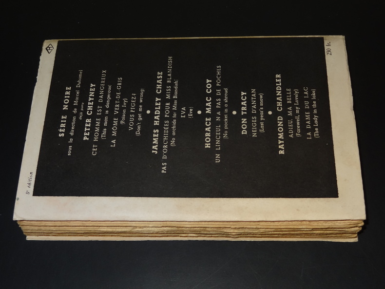 Traduit de l'américain par Michèle et Boris Vian. Série noire sous la direction de Marcel Duhamel. Classification Dewey : 810-Littérature américaine
